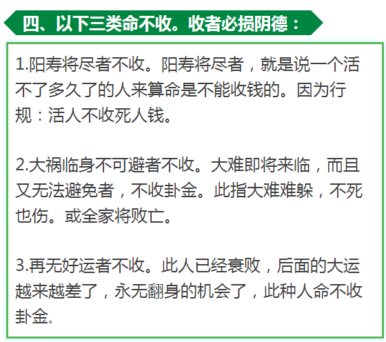 算命行规规定:算命不收命金则等于白送人一条命,对来算命者不利,对泄露天机者亦不利。